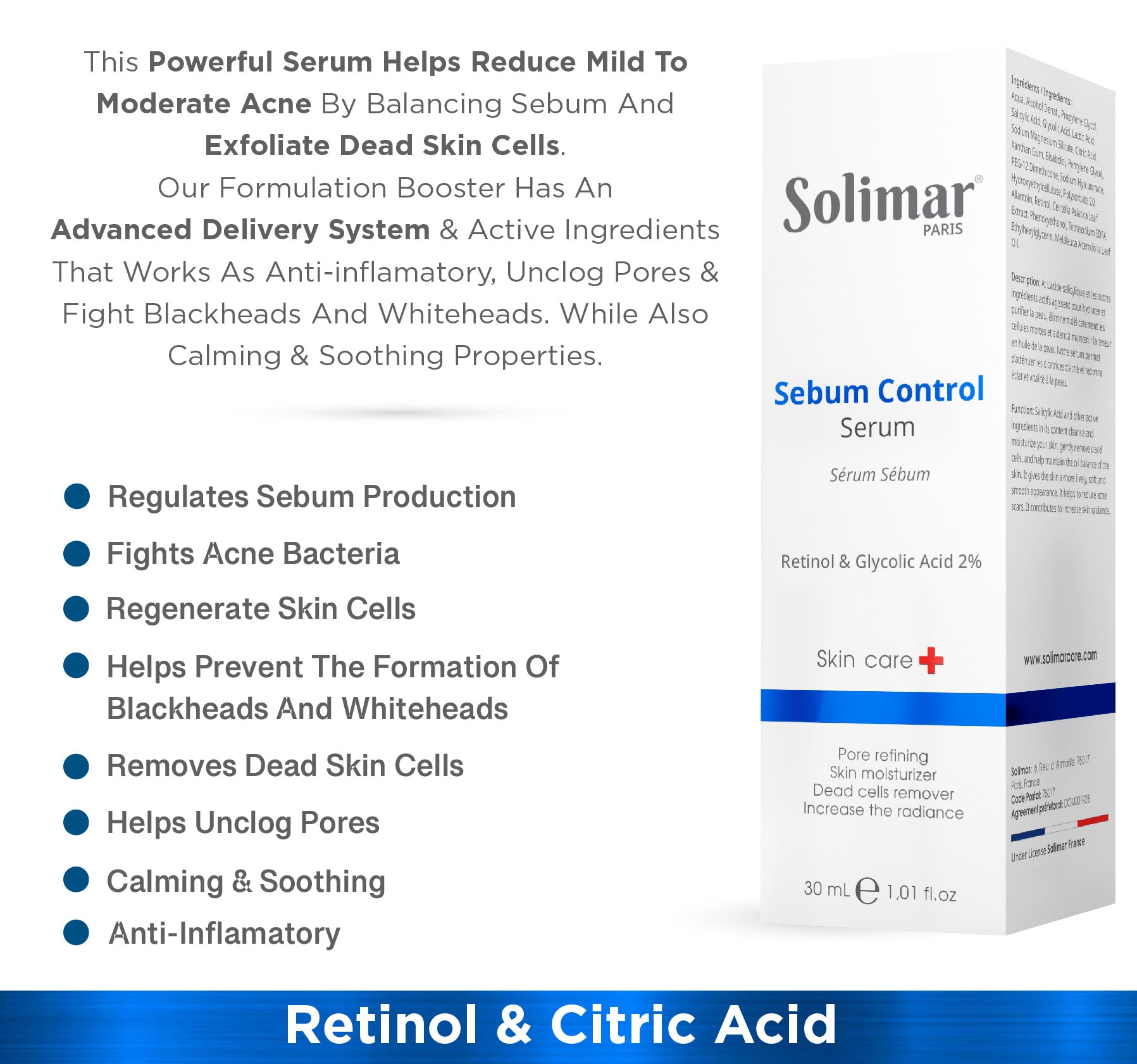قد يشكل علاج حب الشباب تحديًا في أي عمر. من الضروري اتباع نهج مدروس وفهم وظائف المنتجات التي تختارها. استخدمي Sebum Serum، وهو مصل علاجي استثنائي مضاد لحب الشباب، والمعروف بأنه أحد أفضل الحلول لعلاج حب الشباب المعتدل، بما في ذلك الرؤوس السوداء والرؤوس البيضاء. يتميز نظام علاج حب الشباب الشامل هذا بمكونات فعالة للغاية تتفوق في مكافحة حب الشباب المعتدل عن طريق تقشير خلايا الجلد الميتة. بفضل نظام التوصيل المتقدم والمكونات النشطة القوية، يعمل كمضاد للالتهابات، ويزيل انسداد المسام، ويحارب الرؤوس السوداء والرؤوس البيضاء، كل ذلك مع توفير خصائص مهدئة ومرطبة.