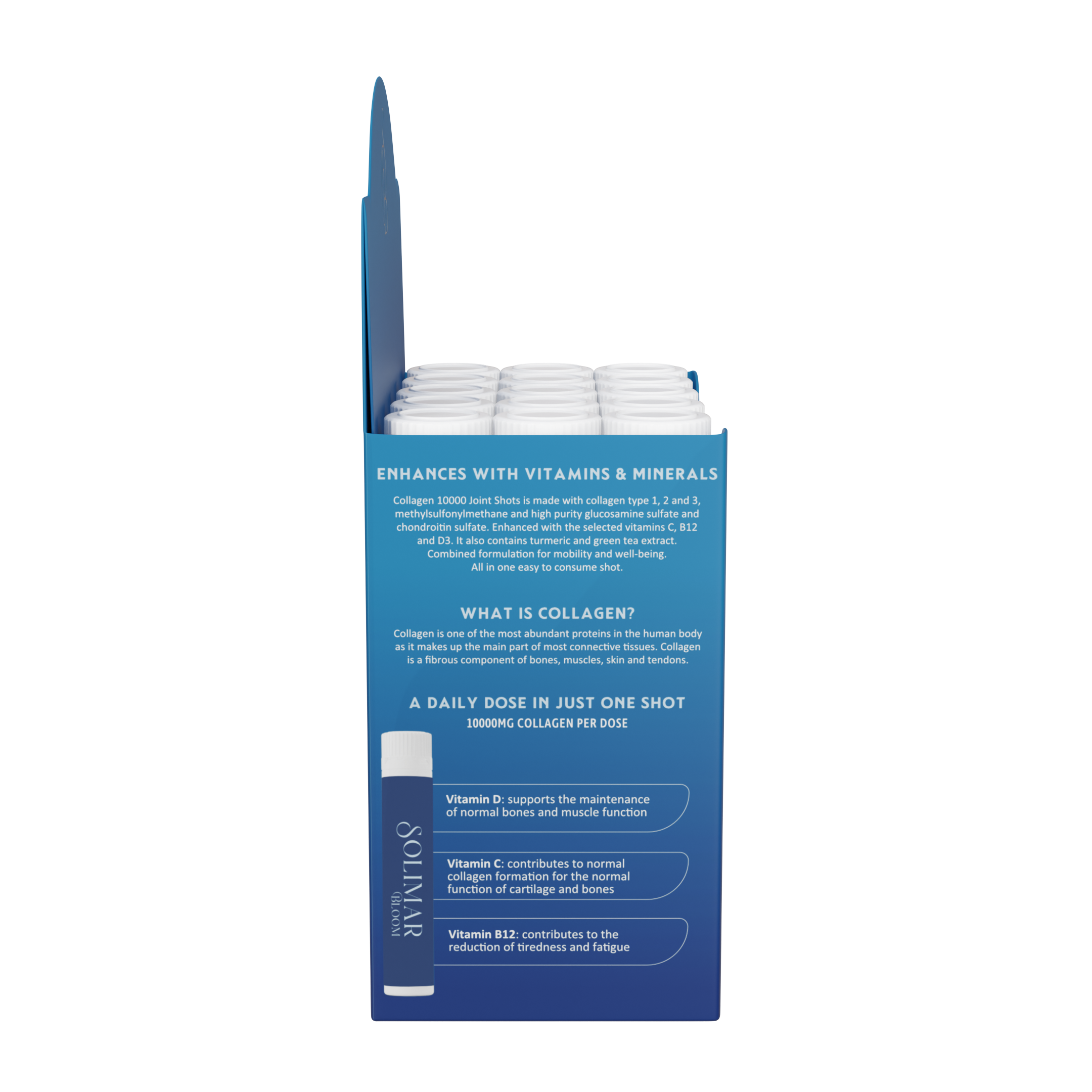 The convenient 25 ml vial makes it easy to take the daily dose. One shot contains 25 ml of top-rated hydrolyzed collagen type II, enriched with Vitamins, Herbs, and our 10000mg Collagen Joint Blend.