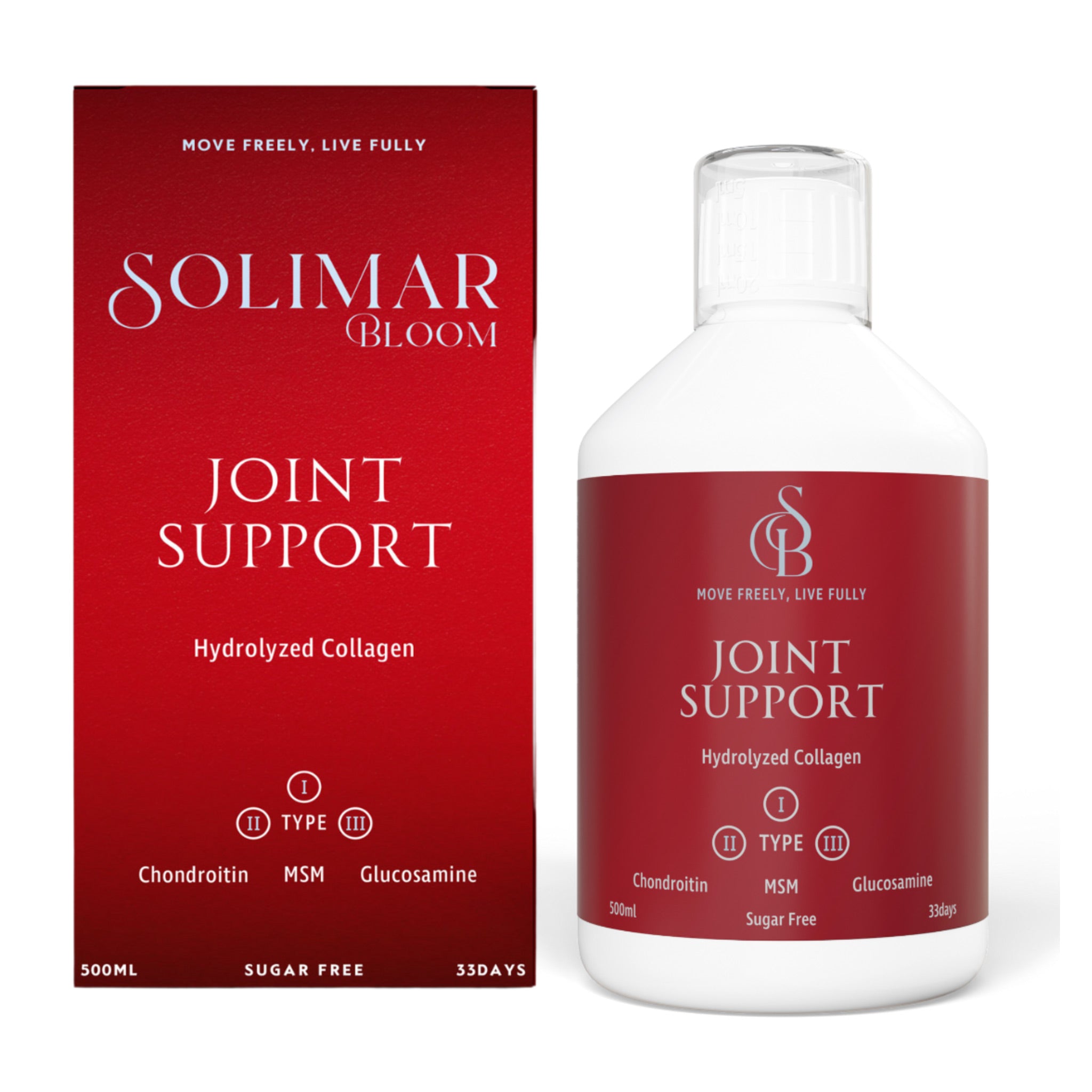 Solimar Bloom Joint Support - Sugar-Free Multivitamin Liquid is designed to Ease Joint Pain and contribute to cartilage repair.