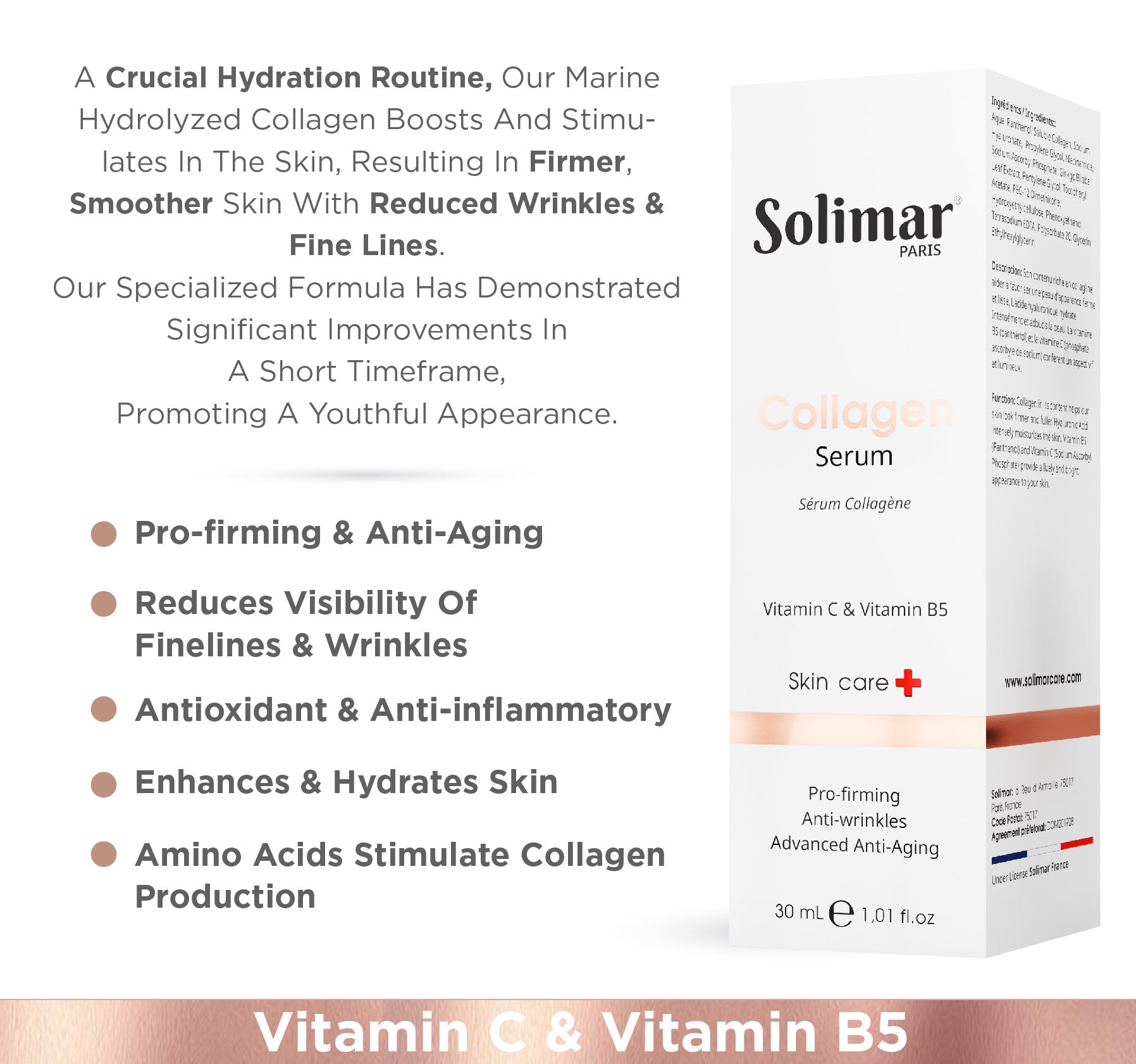 Considered among the top anti-aging solutions, this serum possesses the ability to penetrate the skin more deeply than moisturizers, thanks to its super-lightweight structure enriched with Marine Hydrolyzed Collagen, Vitamin C, Vitamin B5, Hyaluronic Acid, Vitamin E, and Niacinamide.